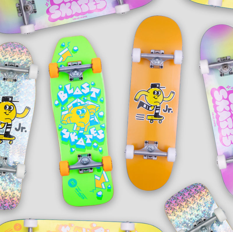 A complete set includes a deck, trucks, wheels, and bearings that are perfectly matched. Parents save time and money because they don't have to buy all the parts separately. Complete skateboards can be ridden right out of the box. This way, kids don't waste any time and can try riding and doing tricks right away!